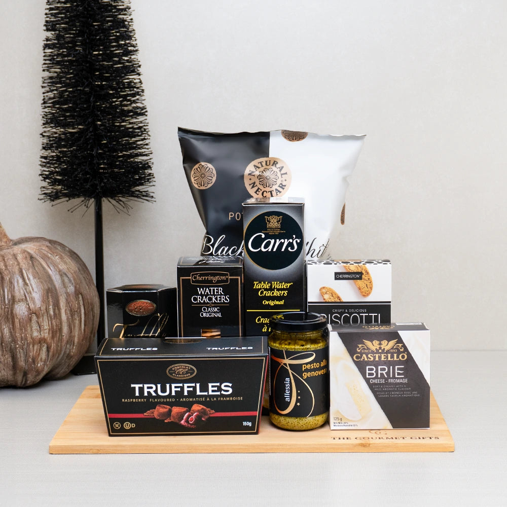 Board: This basket includes a sturdy cutting board, serving as the base for the gift basket and adding a reusable keepsake for future cheese or appetizer presentations.