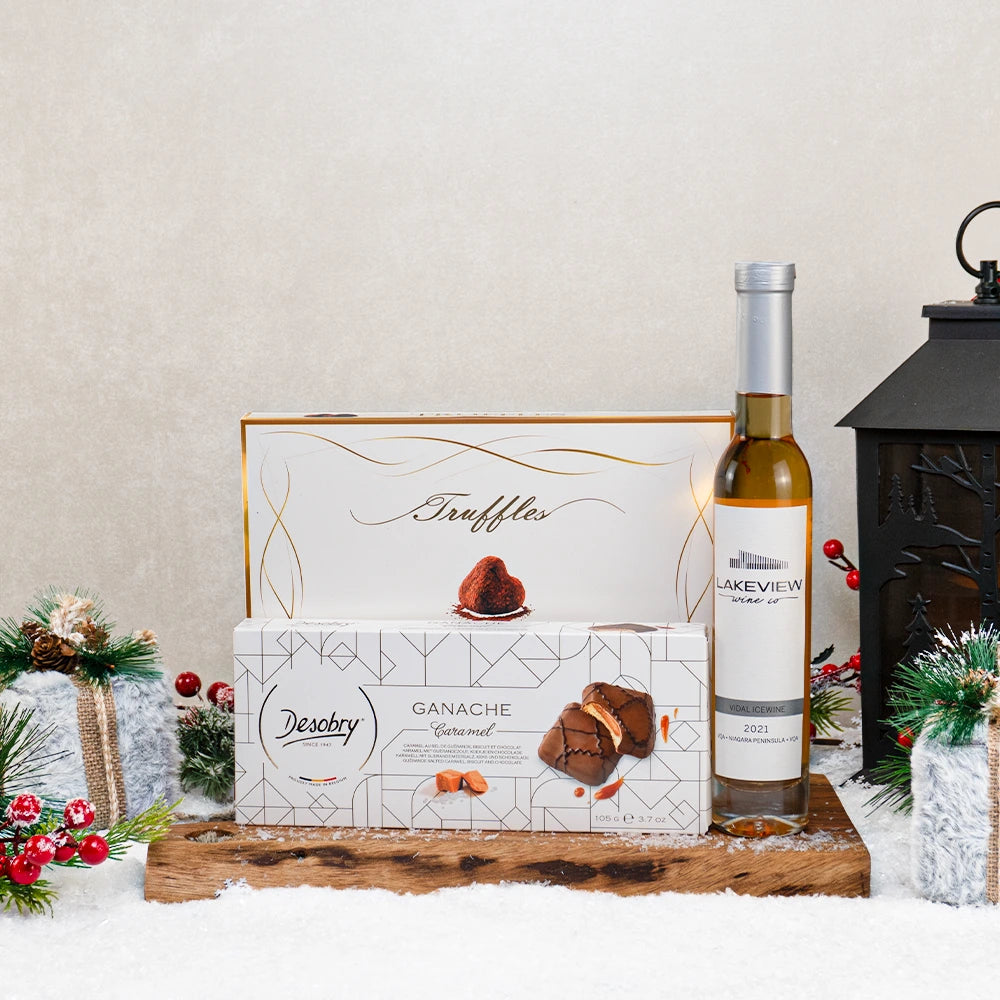 Bottle of Ice Wine: This gift basket comes with a bottle of ice wine.